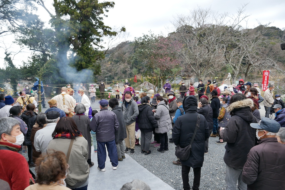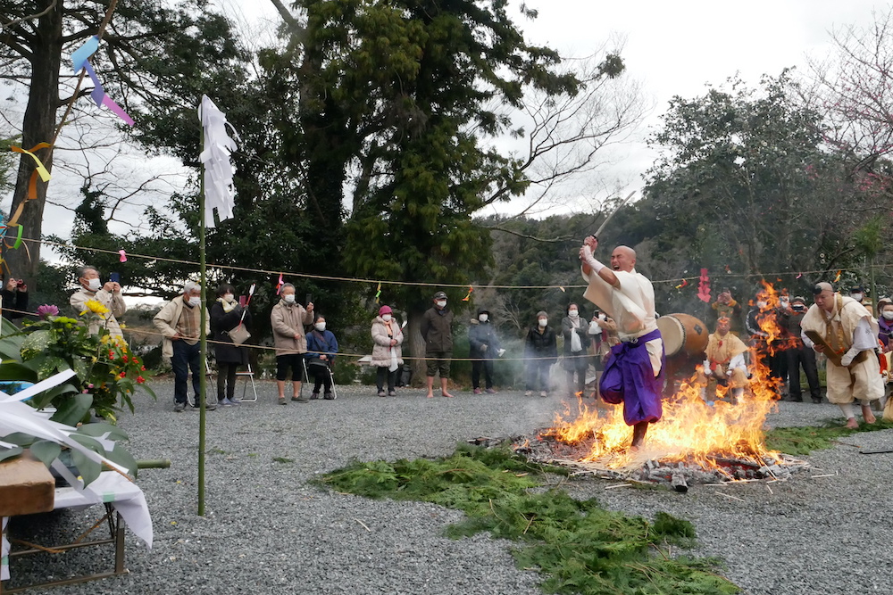 房総半島らしい低山に四方を囲まれた鋸南町の小保田(こぼた)という地区にあるお寺「円照院」では、毎年1月になると「火渡り法要」なる行事が行われており、一般に公開されている。観覧者の数は遠方からの来訪者も含め、年々増え続けているのだという。読経が続けられる中で護摩木が次々と火に焼べられる場面では、予測を遥かに上回る量の煙にその場全体が包まれることとなり壮観だ。昨年、その一部始終を目撃することができた筆者などは、ミニマルミュージックが如き読経に聞き入りながら火を見つめ、煙に包まれているうちに、なんとも言えない原始的な興奮を覚えたものだ。