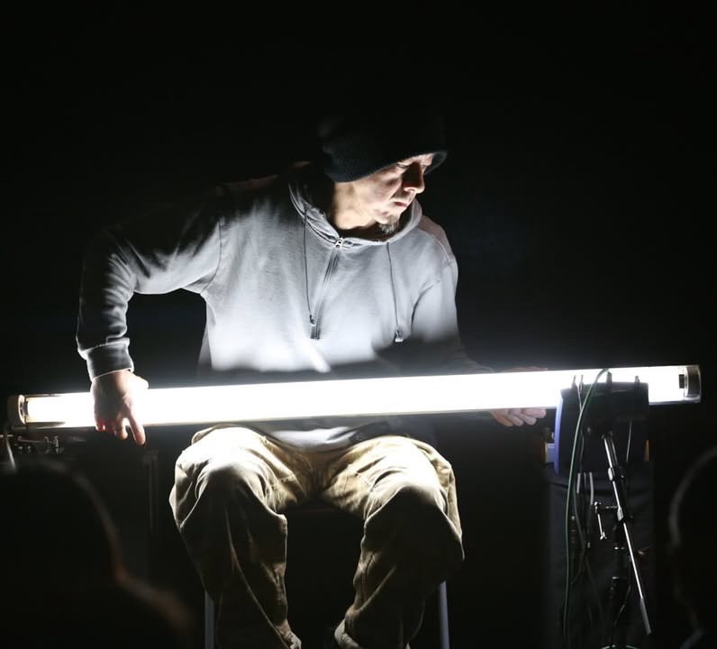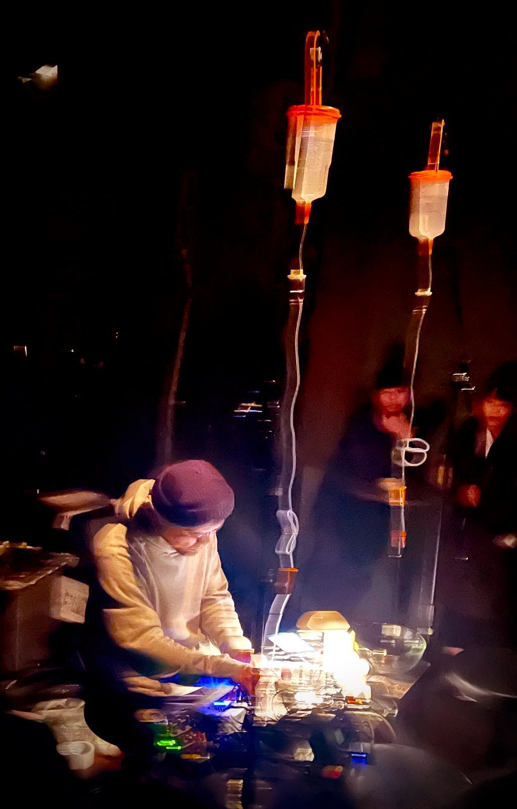 川口貴大 (かわぐちたかひろ)・・・東京在住。主に自作の楽器や改造した機器を使い、音や動き、光や風を発生させるパフォーマンスを行うアーティスト。様々なバンドやユニットへの参加を経て、現在は跡の前(嶺川貴子+川口貴大)、夏の大△(大城真+矢代諭史+川口貴大)のメンバーとしても活動中。最近のソロでは、より音楽的なアプローチをコントロールしきれない機材を使って試みている。