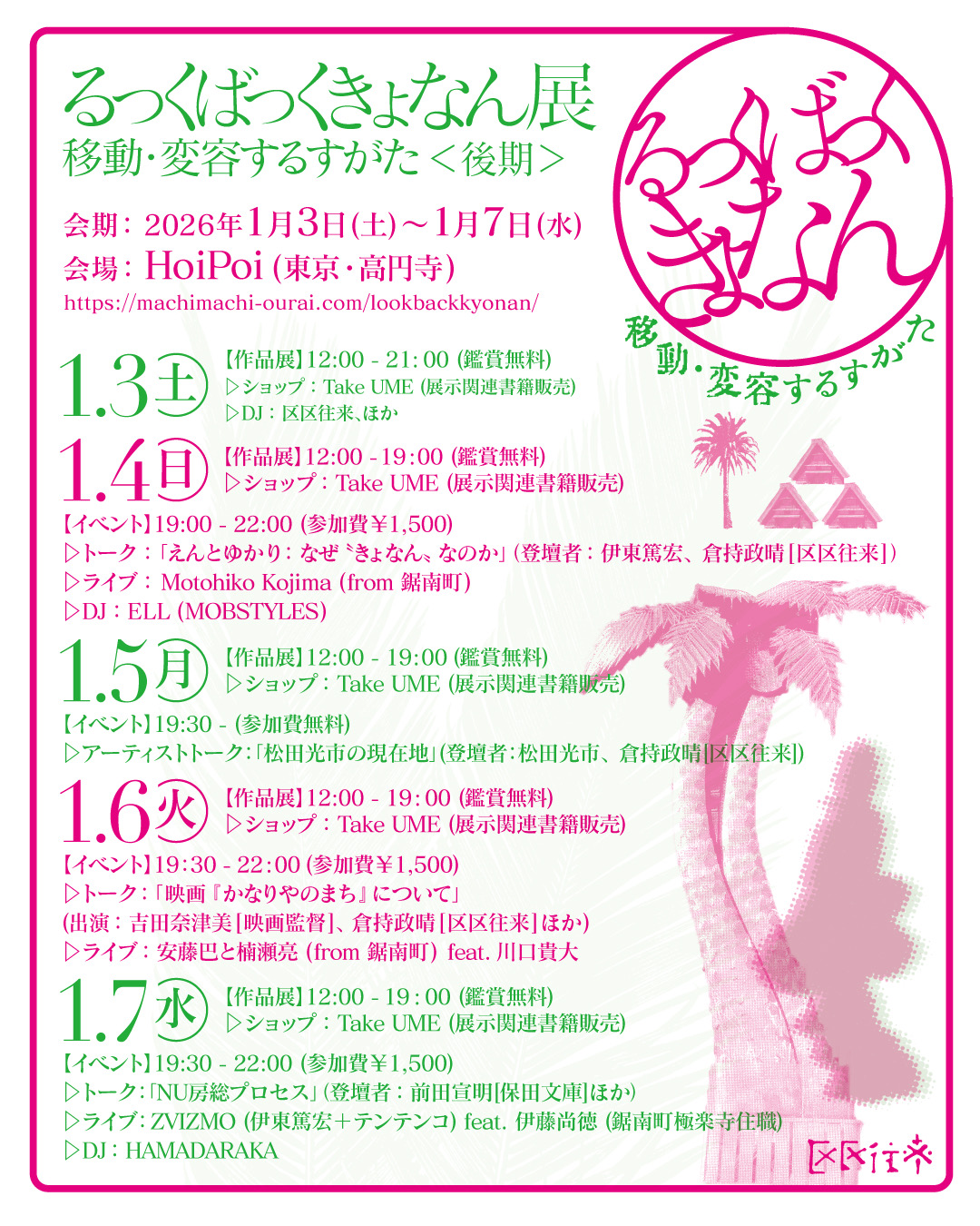 ▷トーク:「えんとゆかり:なぜ〝きょなん〟なのか」(登壇者:伊東篤宏、倉持政晴[区区往来]
