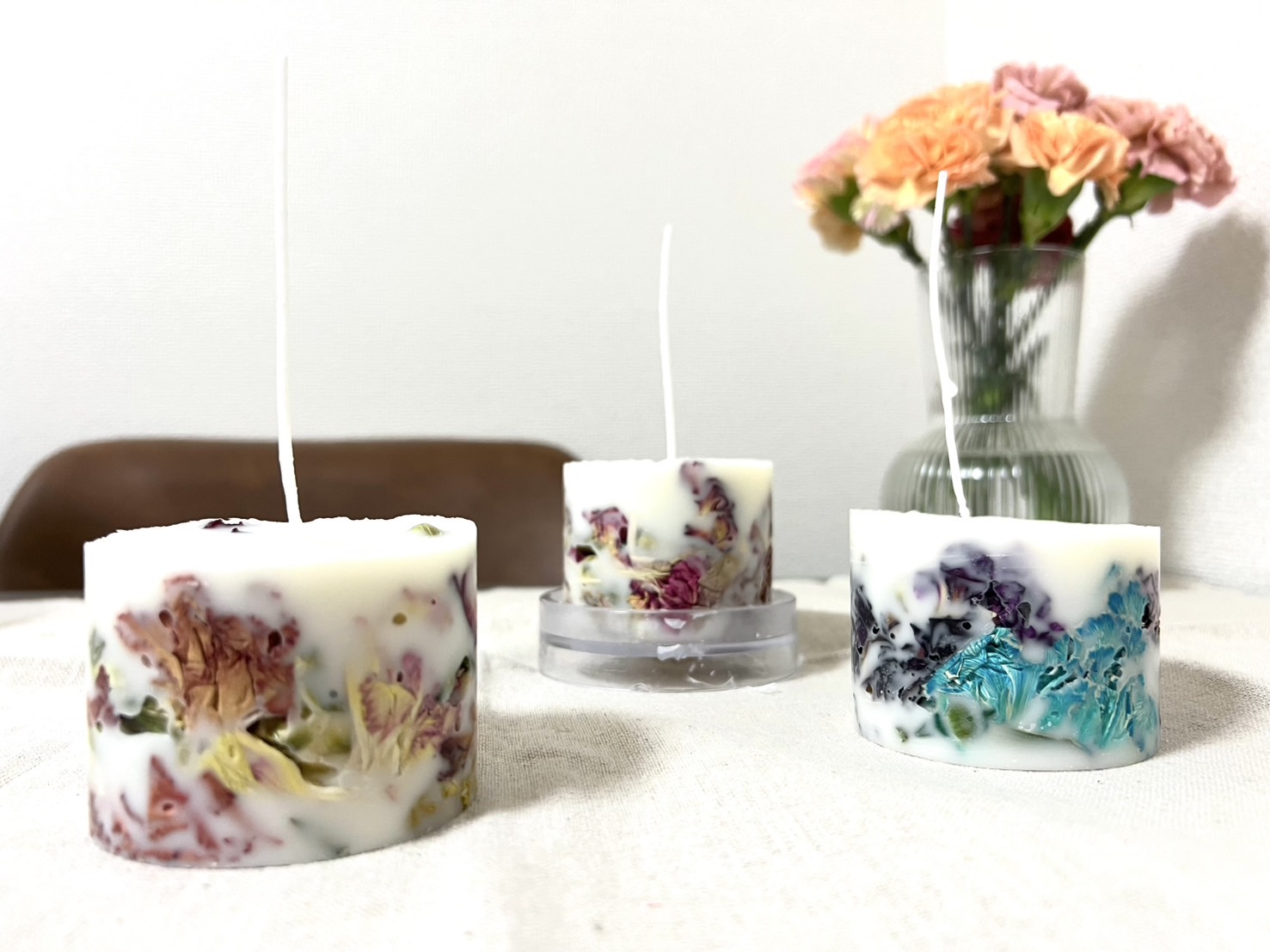〝形が悪い〟〝傷がある〟などの理由で出荷できず廃棄されているお花を使って自分だけのオリジナルキャンドルを作るワークショップです。次の日のお寺のイベント「ぽんぽこ山お月見会」で自作キャンドルを提灯に入れて火を灯し、境内を歩いてみよう。
