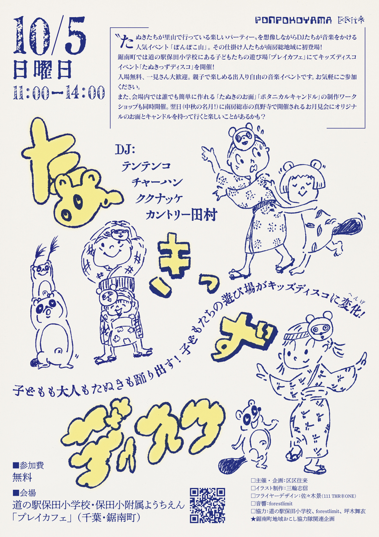 〝たぬきたちが里山で行っている楽しいパーティー〟を想像しながらDJたちが音楽をかける人気イベント「ぽんぽこ山」。その仕掛け人たちが南房総地域に初登場!